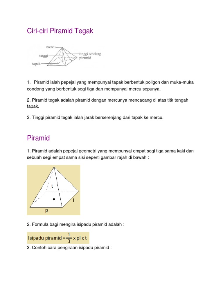 Setelah itu anda boleh merujuk carta rujukan pertumbuhan kanak-kanak untuk mengetahui BMI anak anda. Untuk mencari isipadu sesebuah piramid kita gunakan rumus di bawah. Rumus luas segi3 12 luas segi4.